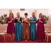 Dlouhé šaty s neodolatelným třpytem, mají 3/4 rukáv a jsou šité se středovým pásem a prostřižením pod prsy. Sukně má kratší podšívku a je šitá do áčka. Lehounký model, který se Vám zalíbí. Šaty nemají zip, krásně pruží.