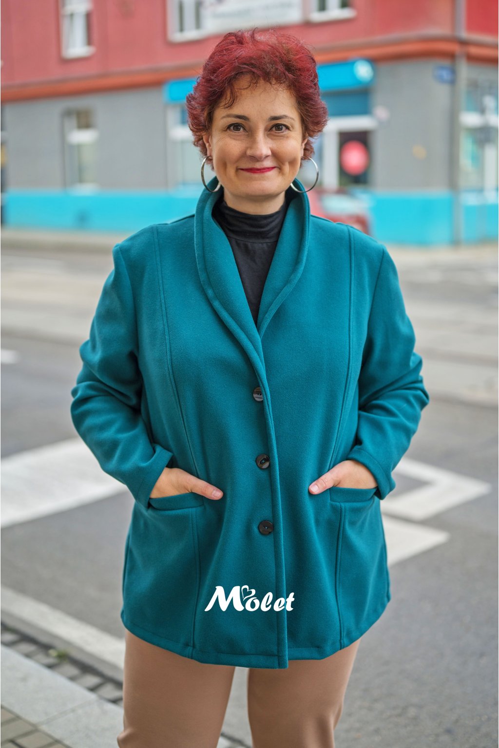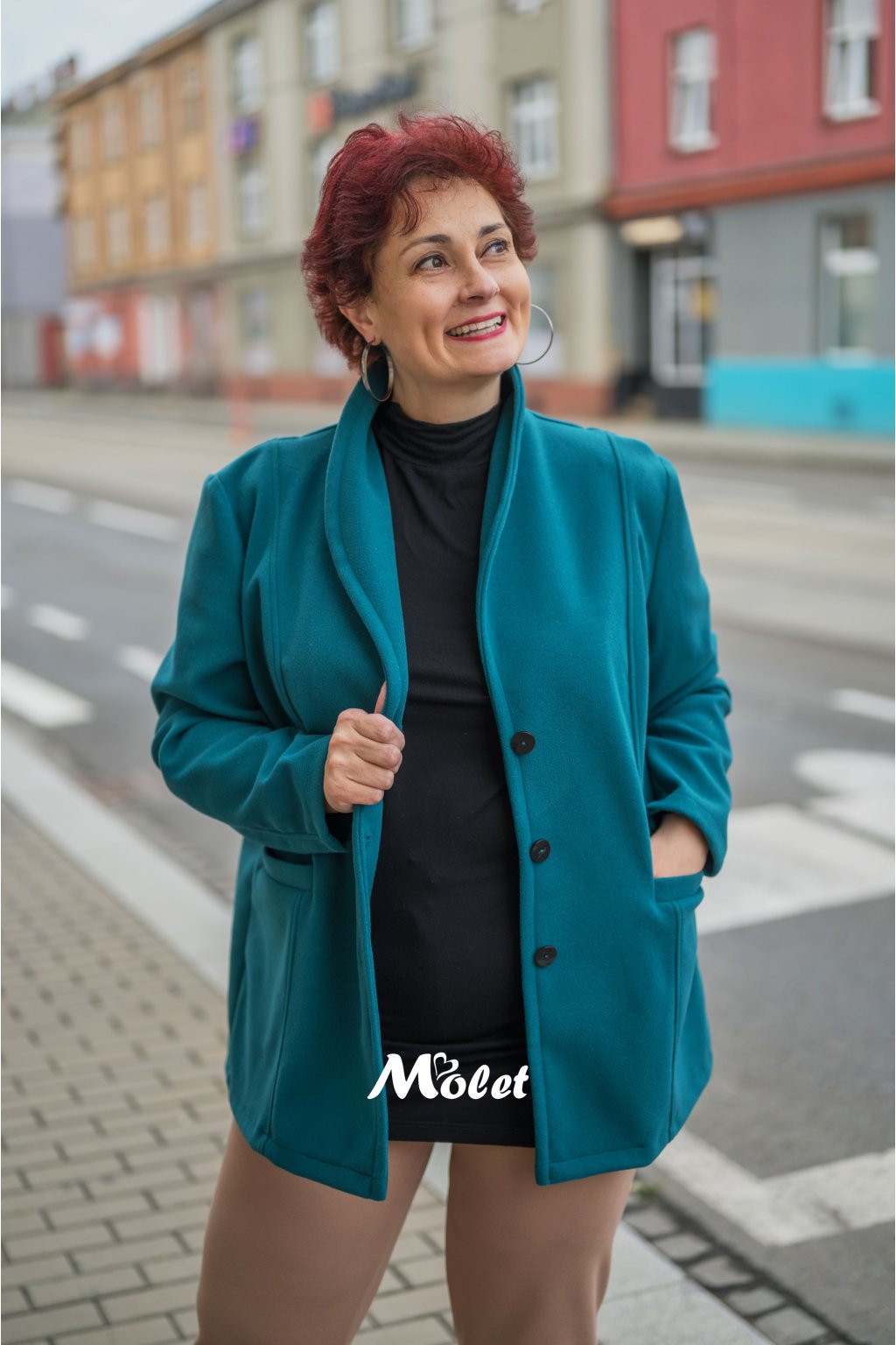 Dámský elegantní kabátek z nádherně pružného flauše glasgow. Je velmi elegantní, vhodný k šatům i kalhotám a střihové provedení princes zdůrazní křivky a je vhodné pro většinu typů postav. Eleganci dodávají i šálový límec. Kabátek je na knoflíky a s kapsami. Nemá podšívku.