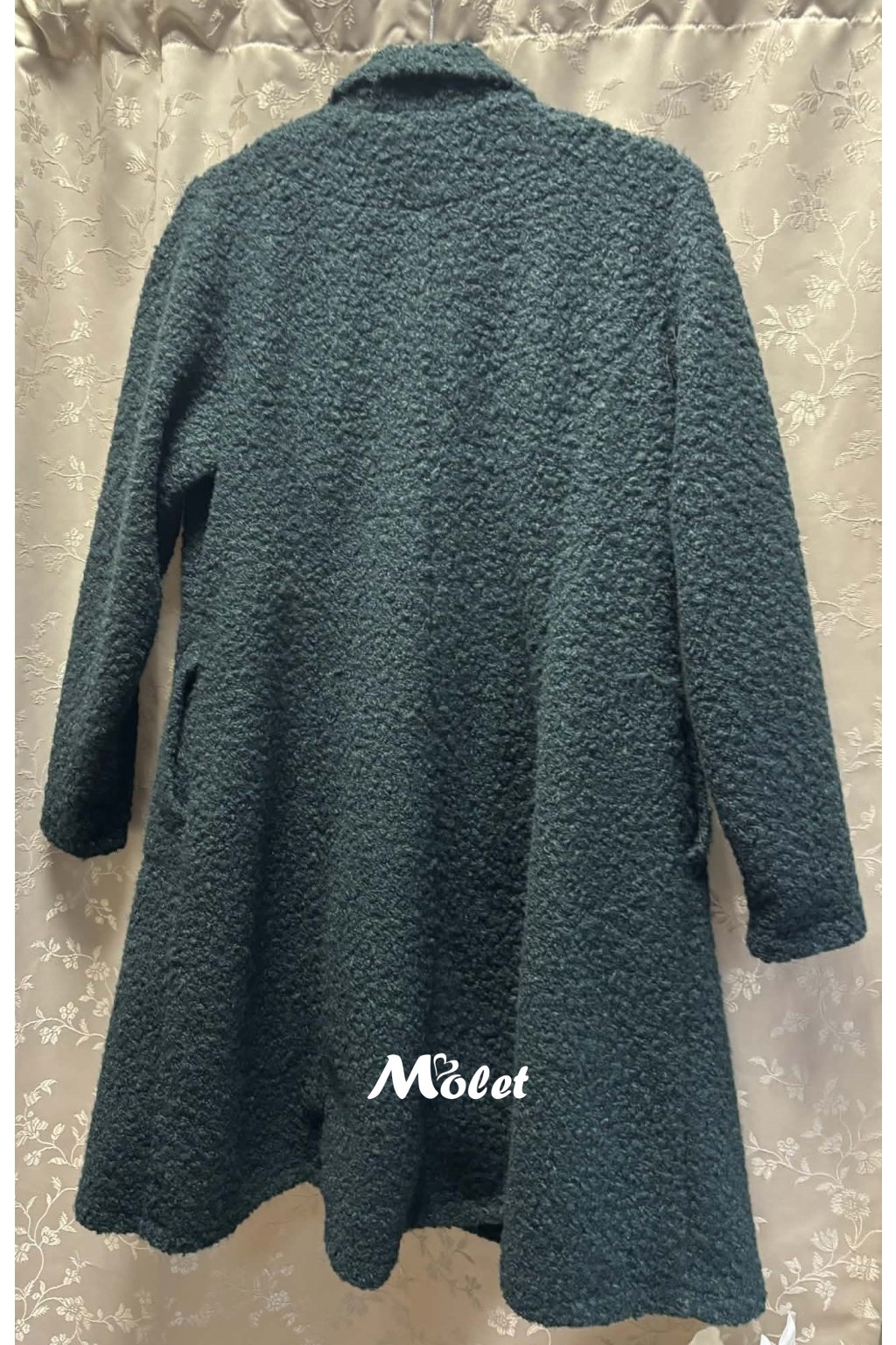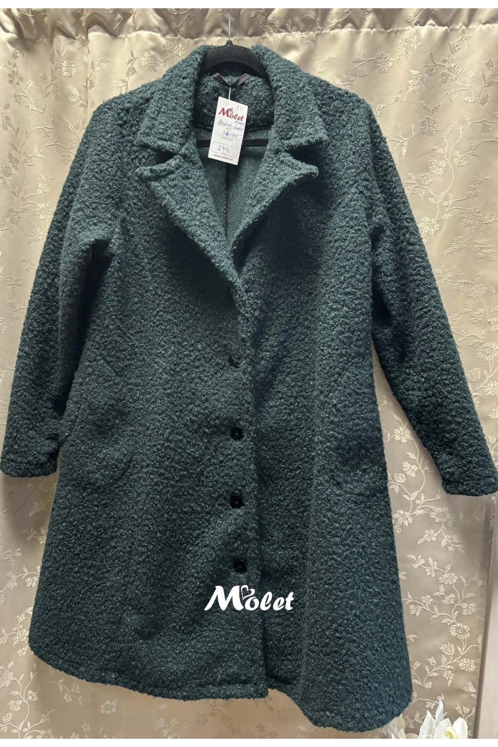Krásný pružný kabát princesového střihu s kapsami, na knoflíky. Kabát je z uzlíčkového materiálu.