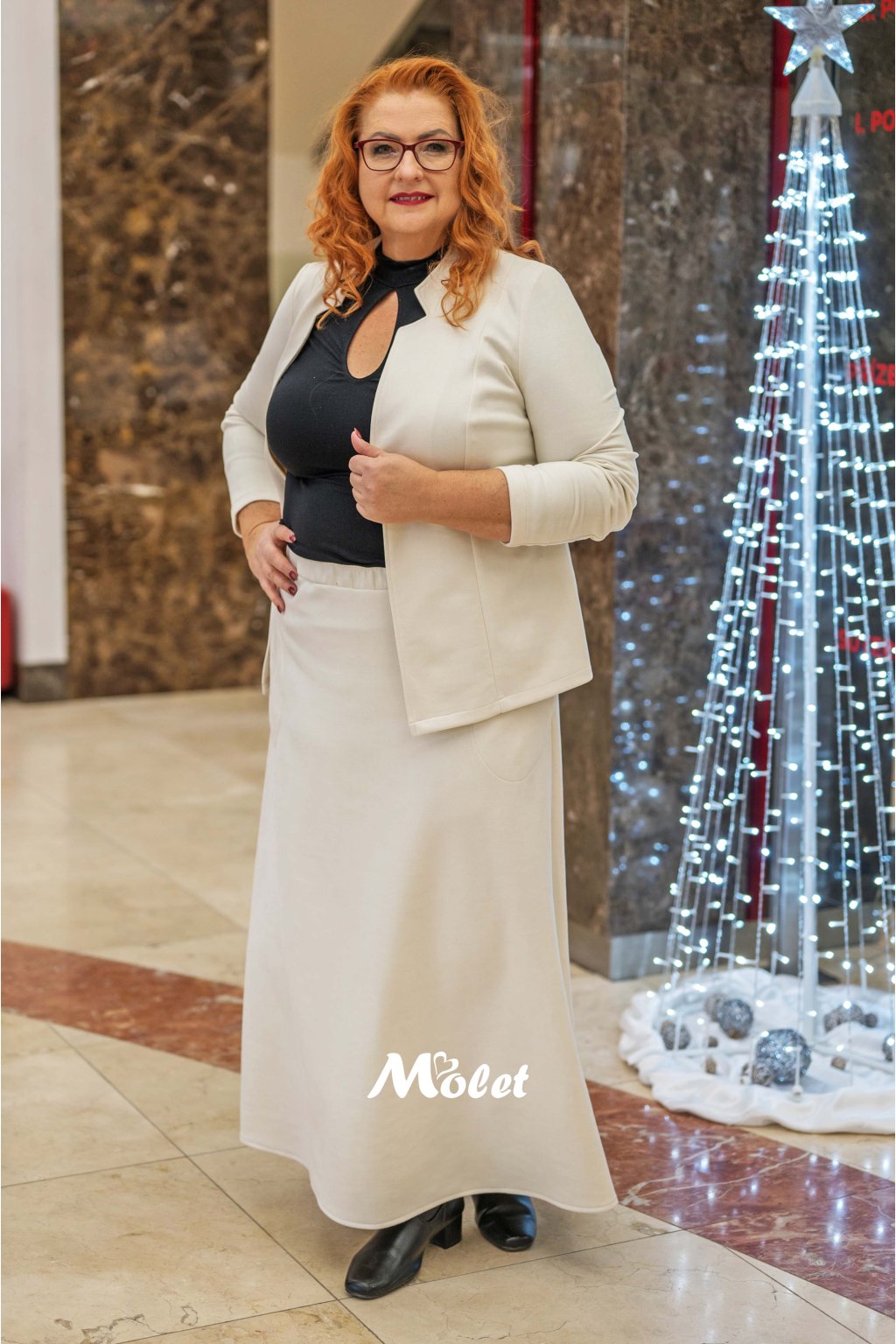 Perfektní dámský stylový kabátek k doplnění sukně Maia a kalhot Cinema ve stejném designu z naší nabídky. Je vyroben z velmi kvalitní látky s elastanem a semišovým vzhledem. Kabátek se zapíná na háček. Kabátek nemá podšívku a nádherně pruží. Má zeštíhlující střih a zajímavě řešený límeček.