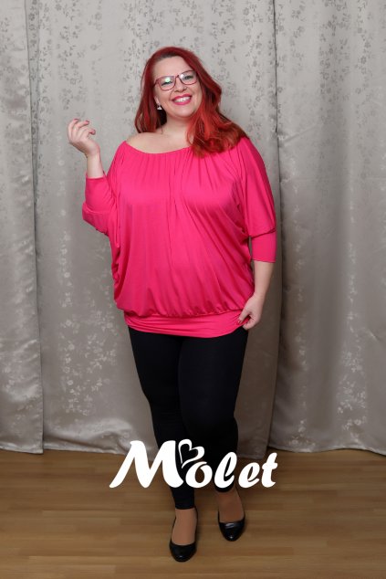 Naše plus size MOLETKA je vysoká cca 174 cm a má na sobě konfekční velikost 48.