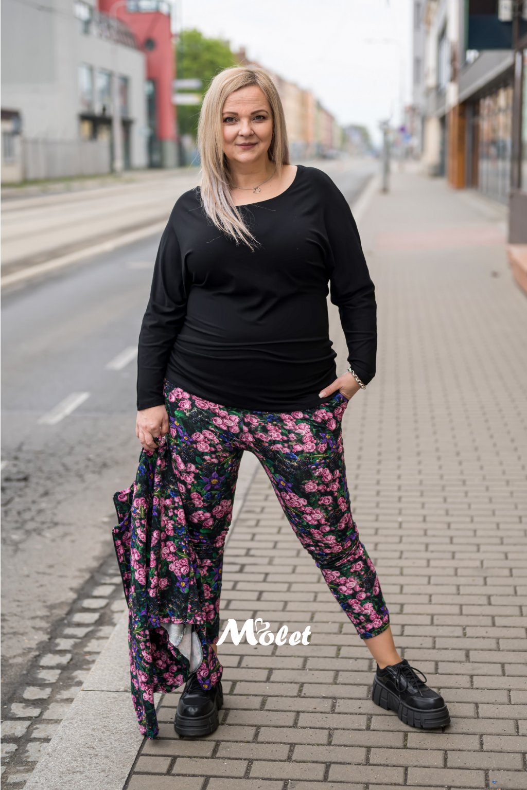 Naše plus size MOLETKA je vysoká cca 174 cm a má na sobě konfekční velikost 50.