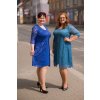 Dámské společenské šaty s efektem 2 v1. Spodní díl je z hladké pružné látky a vrchní z pružné krajky, které tvoří efekt kabátku.