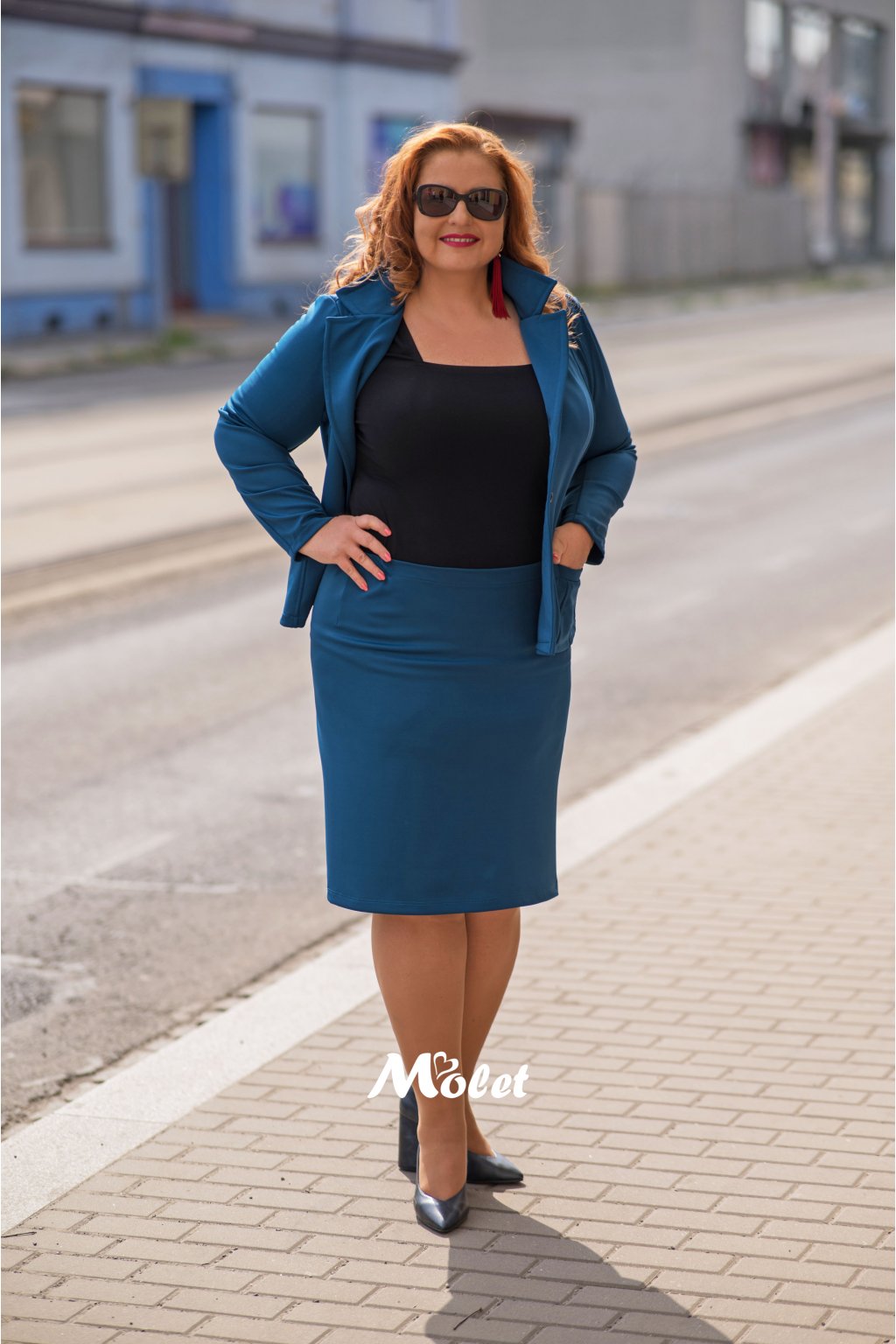 Naše plus size MOLETKA je vysoká cca 174 cm a má na sobě konfekční velikost 48.