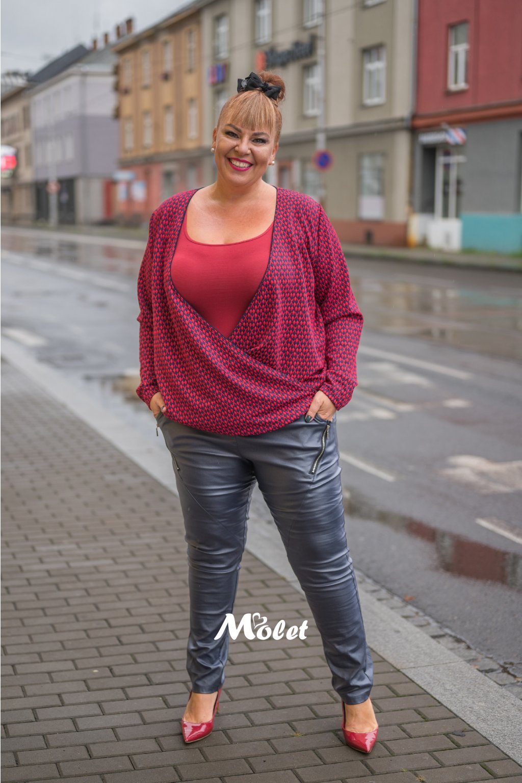 Městský typ volnočasové mikiny nebo halenky s dlouhými rukávy v zavinutém vzhledu. Ležérní střih, který bude lichotit Vaší postavě. Mikinu je možné také vrstvit např. spodním topem. Dole je zakončená légou a na prsou se kříží. Červeno modrý design je navíc velmi elegantní.