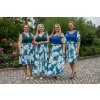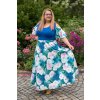 Dlouhé modré šaty s květinovou sukní a rukávy z umělého hedvábí silky