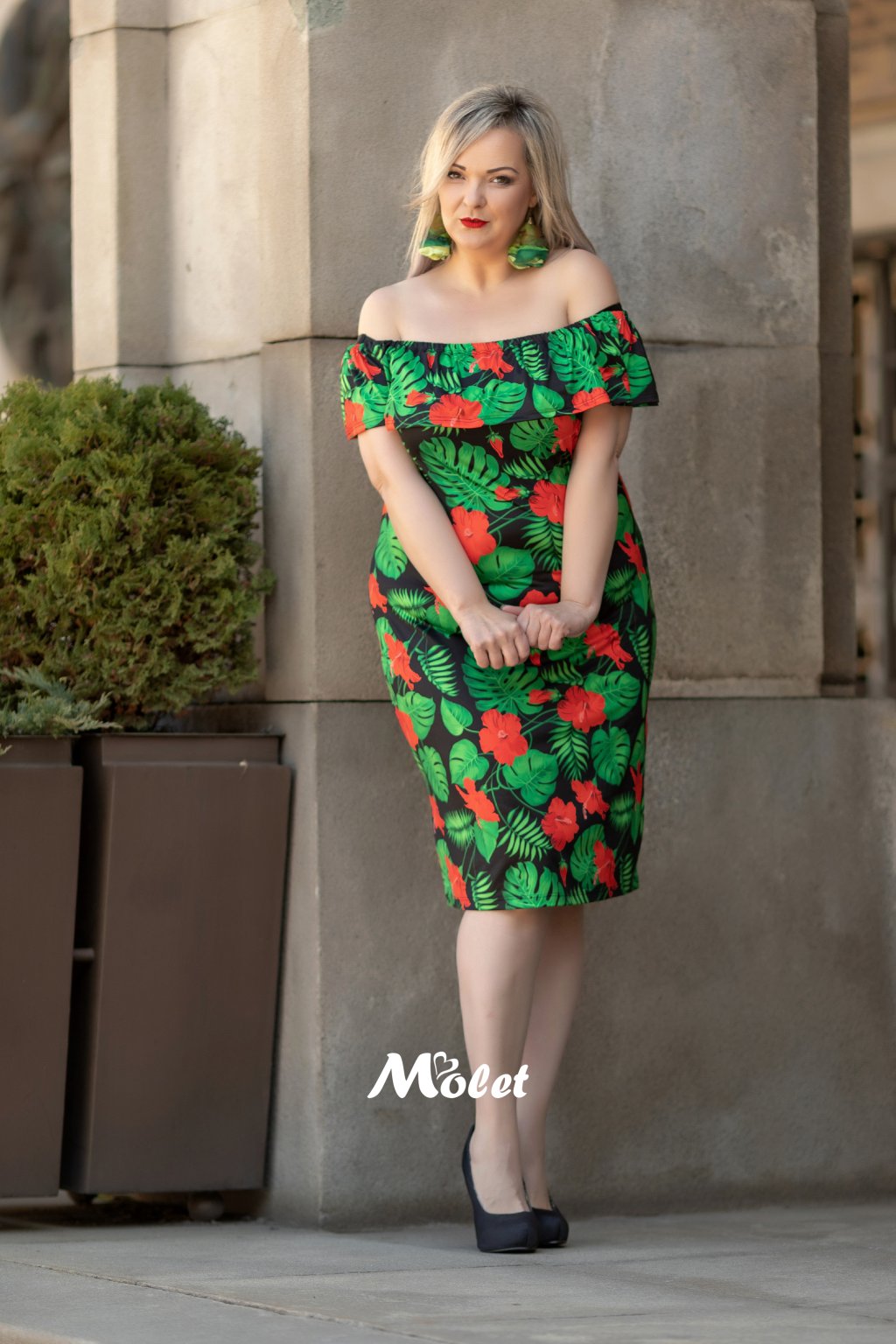 Krásné letní šaty s volánkem pouzdrového střihu. U tohoto letního modelu oceníte především variabilní volán v tropic designu, který můžete použít na více způsobů. Z jednoho modelu v okamžiku vytvoříte jiné šaty. Volán šijeme v délce 25 cm.
