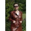 Hnědá sako z eko kůže, ve kterém se budete cítit velmi pohodlně díky elastanu, který je ve složení materiálu. Sako je vypasované tak, aby krásně sedlo na Vaše křivky. Má dvě malé kapsičky a zapíná se na dva knoflíčky. Šijeme v délce 65 cm od ramene. Krásný kousek do Vašeho šatníku.