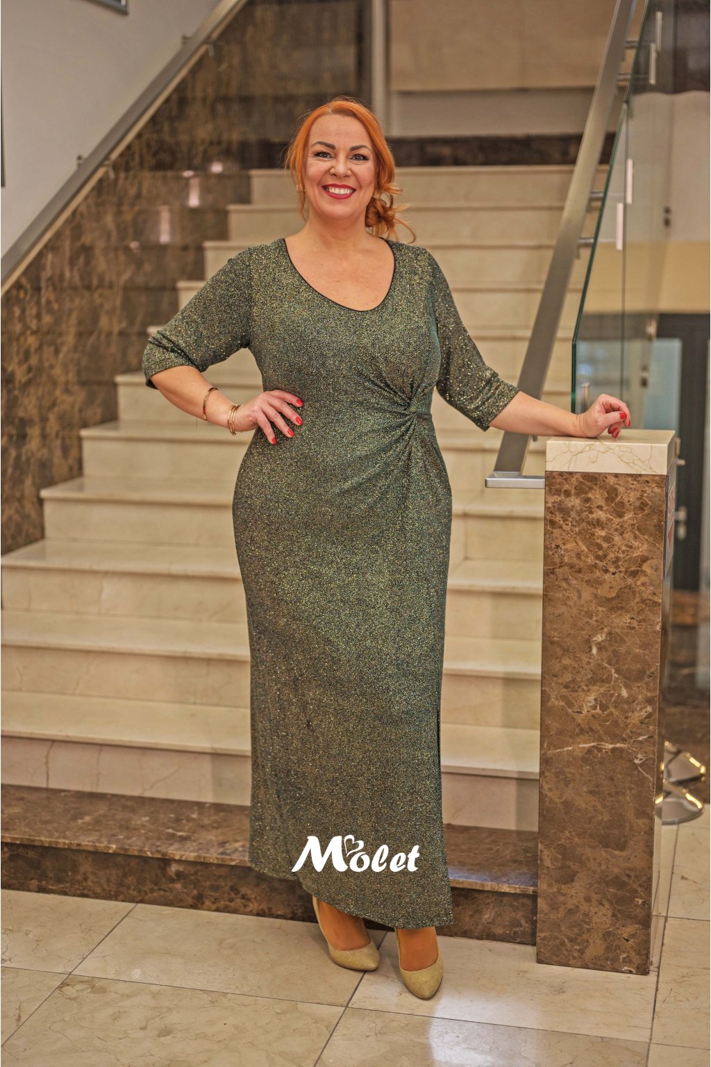 Naše Moletka má cca 175 cm a na sobě má 50 konfekční velikost o délce 145 cm.