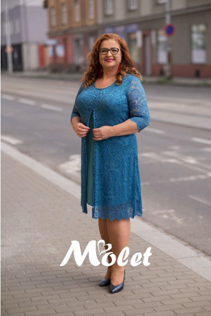 Naše plus size MOLETKA je vysoká cca 174 cm a má na sobě konfekční velikost 48.