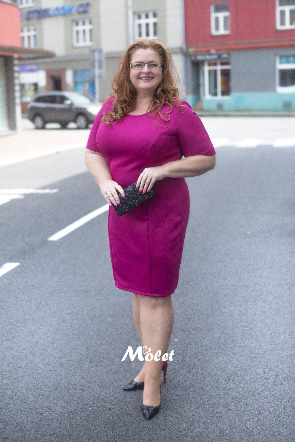 Foksiové šaty s loketním rukávem jsou krásně vyštíhlené, výstřih je kulatý. Materiál je pevnější, ale krásně pruží. Šaty nemají zip.