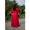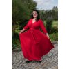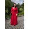 Krásné maxi šaty se středovým pásem a ozdobnou vázačkou. Vrchní díl je hladký s hlubokým výstřihem, který se kříží na prsou. V pase jsou prostřižené se středovým pásem a mají 3/4 rukáv. Sukně je šitá do áčka . Šaty nemají zip, nemačkají se a jsou pružné.
