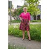 Krásné šaty s hlubokým přeloženým výstřihem v růžové barvě a barevnou sukní. Vrchní díle je vzorovaný s hlubokým výstřihem, který se kříží na prsou. V pase jsou prostřižené se středovým pásem a mají 3/4 rukáv. Sukně je šitá do áčka . Šaty nemají zip, nemačkají se a jsou pružné.