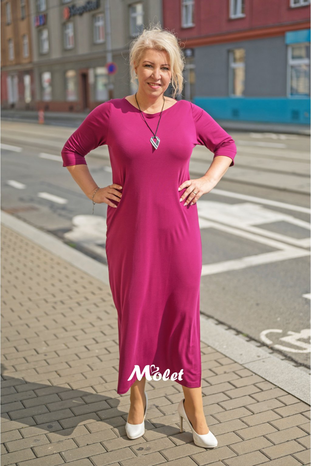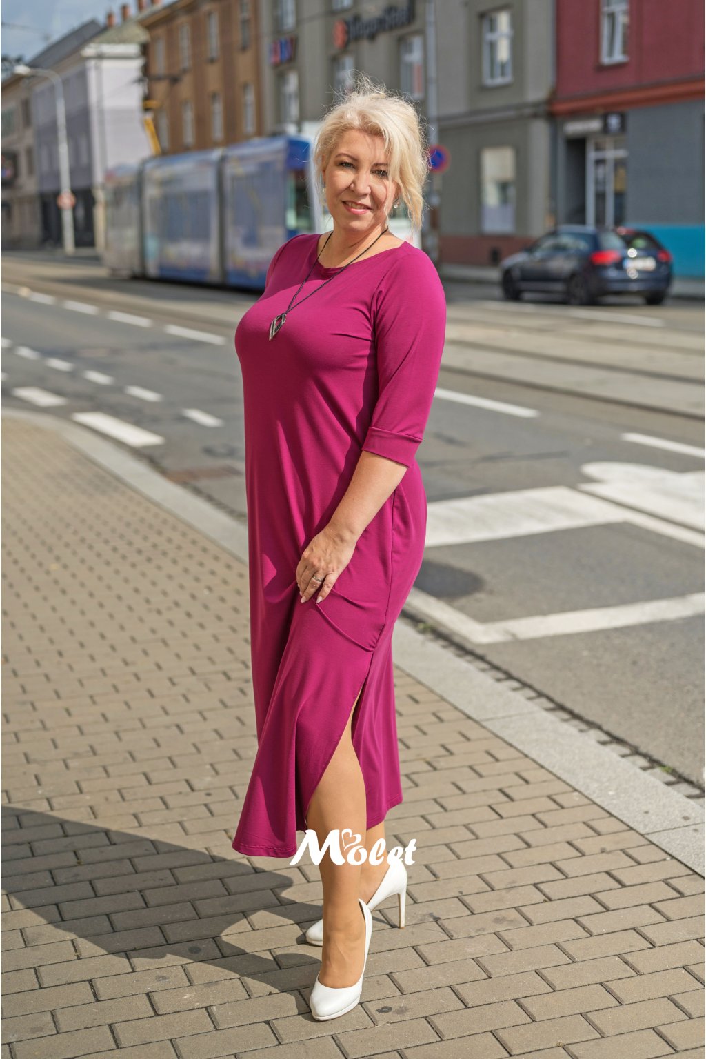 Dámské společenské šaty s rozparkem z velmi kvalitní hebké látky. Šaty mají rovný střih a dělají hezkou postavu, zvlášť plnoštíhlým ženám.