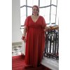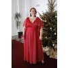 Dlouhé společenské šaty. Nepostradatelný kousek ve Vašem šatníku, pokud Vás čeká ples, maturita, státnice, svatba či jiná společenská událost. Mají dokonale padnoucí střih pro plnoštíhlou postavu a zajímavý střih vrchního dílu, velmi lehký a krásně pružící materiál. Šaty mají lesklou podšívku. Vrchní díl je z krásně se třpytícího tylu v pase nařasen. Tento model má motýlí rukávy. Nemají zip.