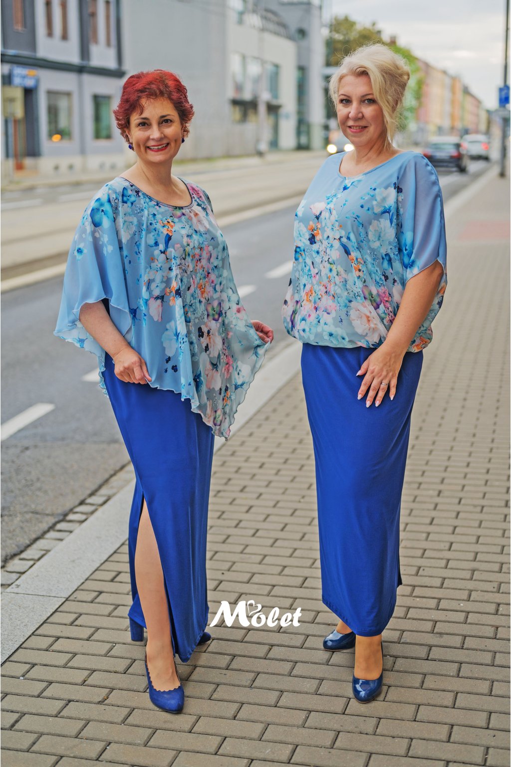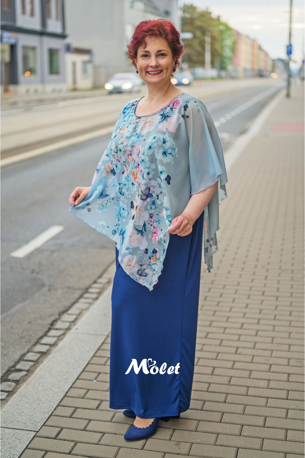 Naše plus size MOLETKA je vysoká cca 174 cm a má na sobě konfekční velikost 52 o délce 145 cm.
