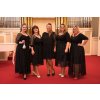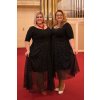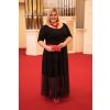Černé dlouhé šaty s 3/4 rukávem a hlubokým výstřihem. Sukně má kratší podšívku a vrstvu tylu na kterém jsou zlatá kolečka lemovaná černým semišem. Sukně je šitá do áčka. Lehounký model, který se Vám zalíbí. Šaty nemají zip, krásně pruží.