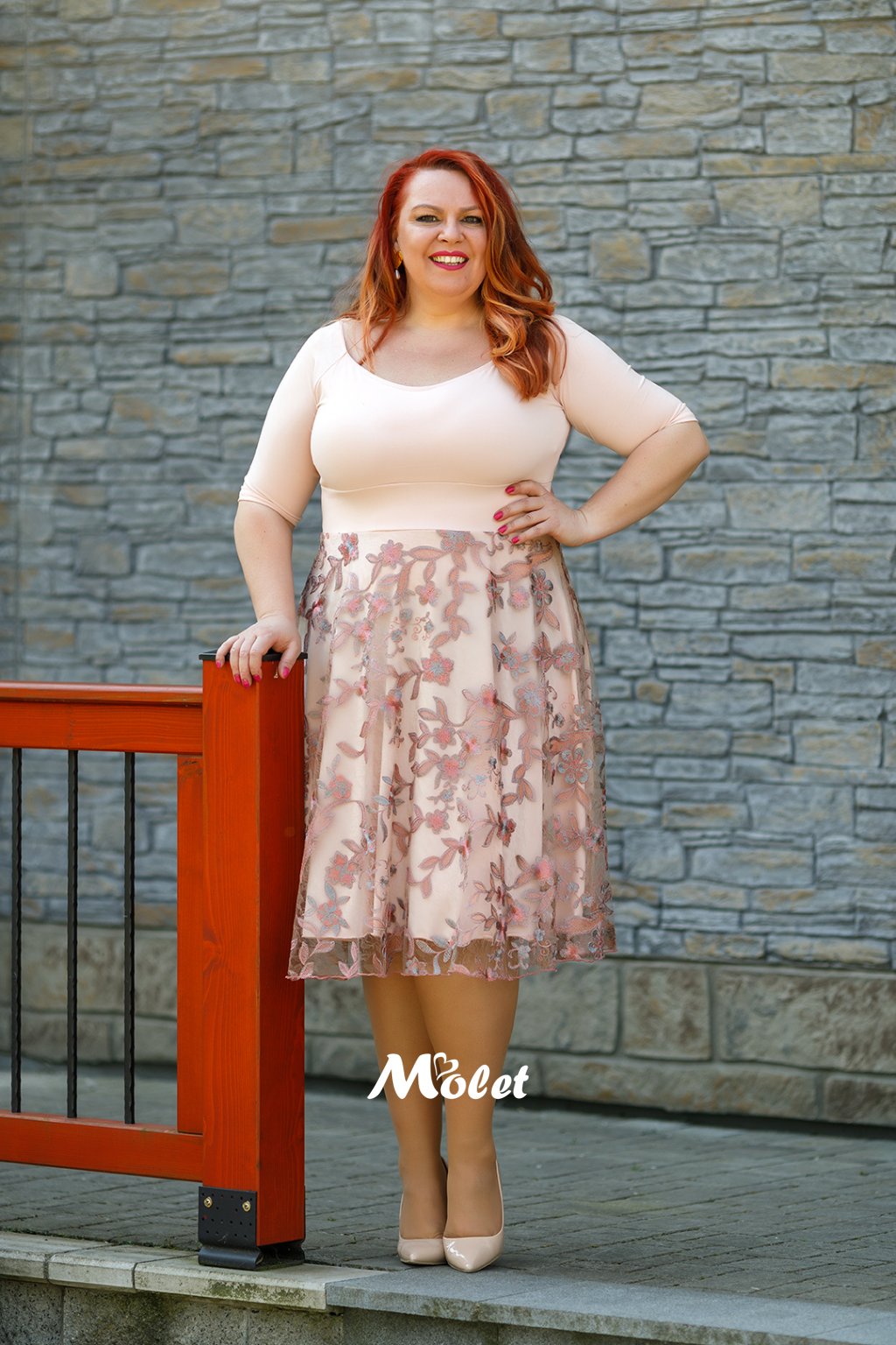 Magic krátké šaty z vyšívaného tylu meruňkové
