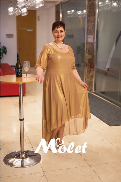 Naše Moletka má cca 175 cm a na sobě má 48 konfekční velikost o délce 110 cm.