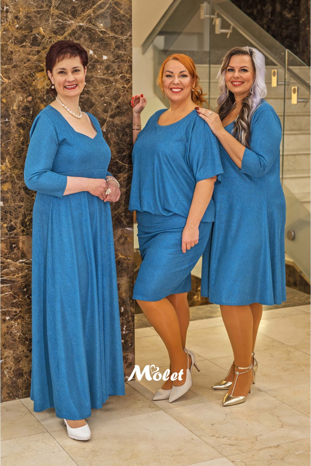 Velmi pohodlná a příjemná sukně z luxusní, pružné modré látky s leskem. V pase na gumu. Velmi pohodlný elegantní model. Spolu s halenkou Linea z naší nabídky stejného designu vytvoříte krásný komplet.