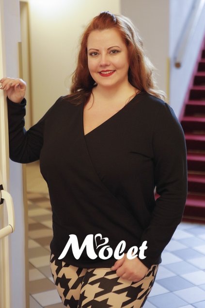 Naše MOLETKA je vysoká cca 174cm a má na sobě konfekční velikost 50.