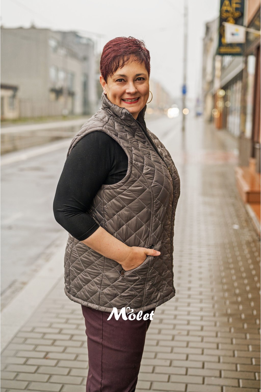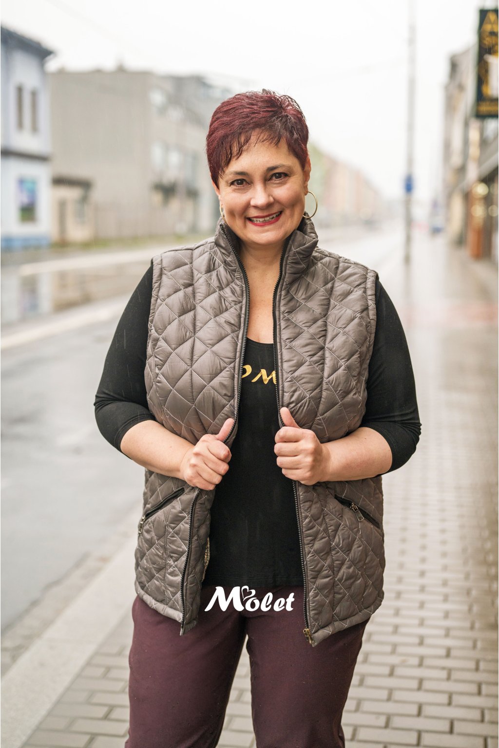 Dámská prošívaná vesta s kapucí a zapínáním na zip.