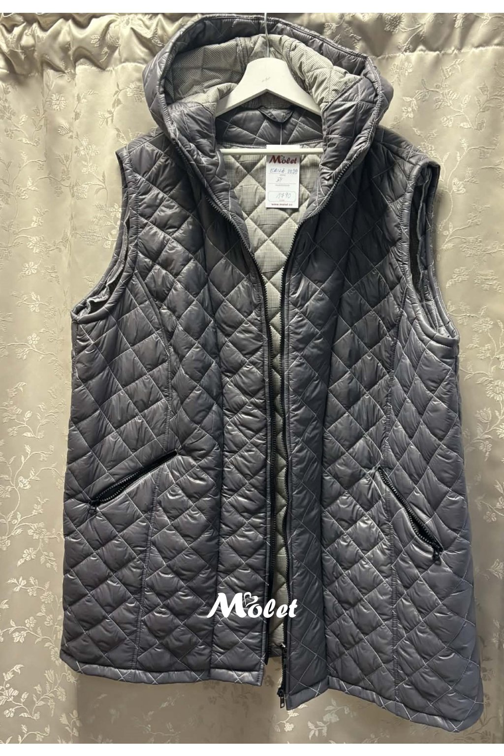 Dámská prošívaná vesta se stojáčkem a zapínáním na zip.